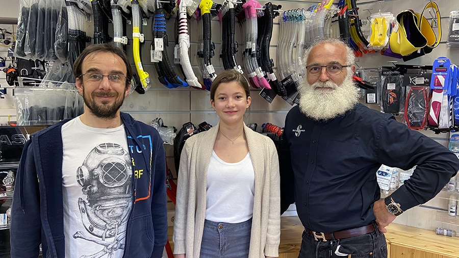 Je tiens à renouveler mes remerciements à toutes les équipes, mais en particulier à Jérôme et Hubert, qui m’ont très bien accueillie au magasin plongée du Vieux Campeur.