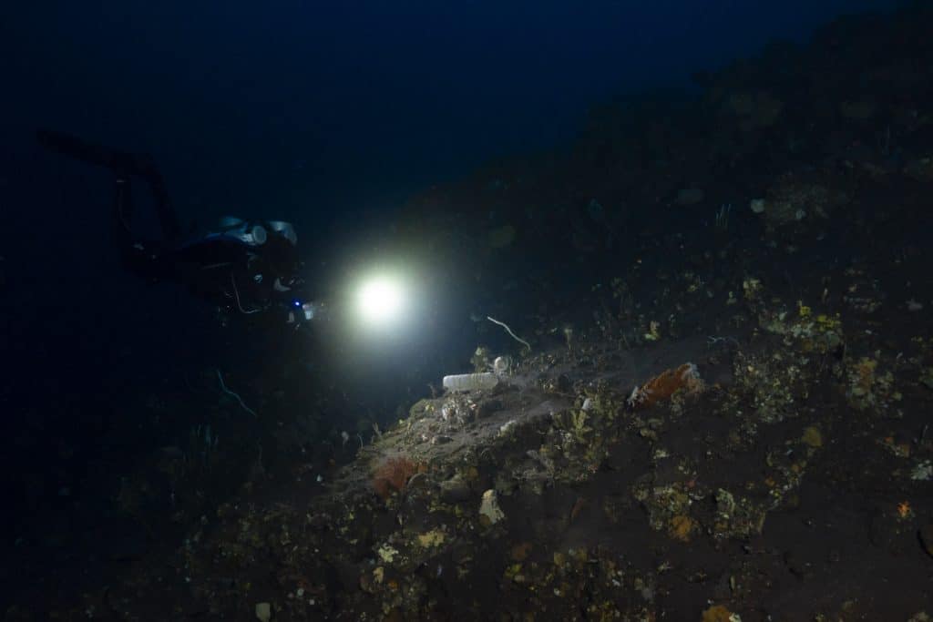 On remonte de 150m… et là j’entends “cœlacanthe !” — j’ai cru à une blague.